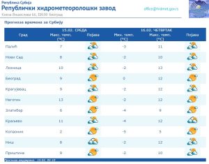 Biometeorološka prognoza za Srbiju za sredu, 15. februar
