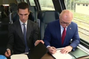 Prva tranša investicionog granta za izgradnju brze pruge Beograd-Niš u okviru finansijskog paketa za železnički Koridor 10, potpisana je danas u vozu u prisustvu predsednika Vučića i komesara Varheljija.